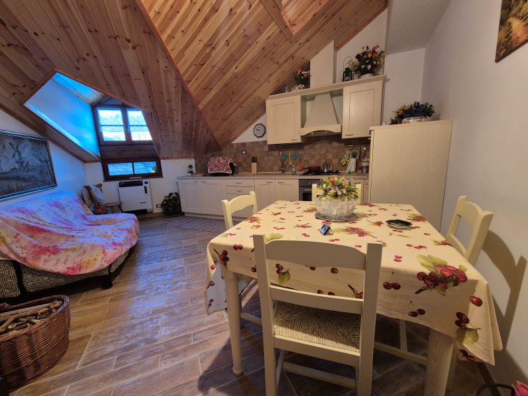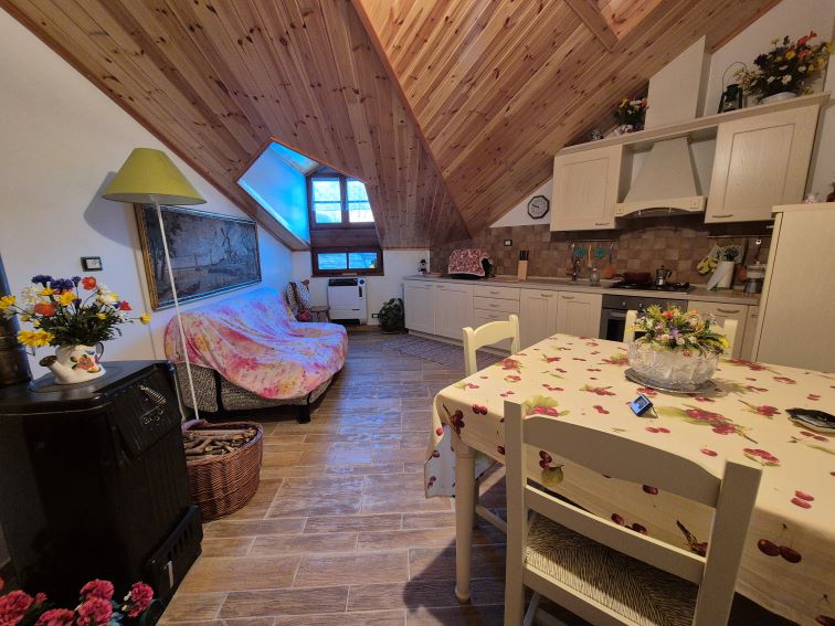 L’appartamento, di circa 46 mq, si presenta in ottime condizioni grazie alla ristrutturazione effettuata e si distingue per l’atmosfera calda e caratteristica data dal tetto in legno a vista. L’ingresso conduce alla zona giorno con cucina abitabile ben organizzata, ambiente funzionale e ideale per la vita quotidiana.