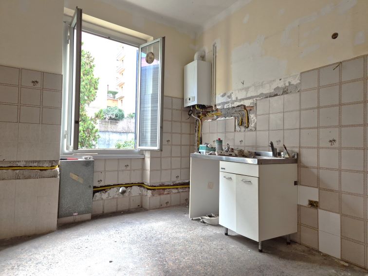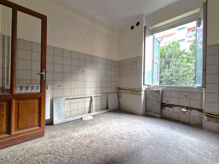QUEZZI – LARGO MERLO – 5 VANI DA RISTRUTTURARE Quezzi, Largo Merlo / Cinquevani. In contesto tranquillo e ben collegato, proponiamo in vendita appartamento di 64 mq posto al quarto piano di uno stabile d’epoca ordinato. L’immobile gode di doppia esposizione angolare, con due lati liberi e affaccio esterno, che garantiscono una buona luminosità agli ambienti. La superficie è così distribuita: ingresso, cucina abitabile, due camere da letto, una terza stanza utilizzabile come soggiorno o studio e bagno. L’appartamento si presenta da ristrutturare, soluzione ideale per chi desidera personalizzare gli spazi interni o per chi è alla ricerca di un interessante investimento immobiliare. Rimangono presenti i pavimenti originali e gli infissi esterni in legno e vetro. Il riscaldamento è a radiatori alimentato a metano ed è presente la fibra ottica. La zona è servita da mezzi pubblici e servizi di prima necessità e risulta comoda ai collegamenti con il centro città, rendendo l’immobile adatto sia come abitazione principale sia come soluzione da mettere a reddito.